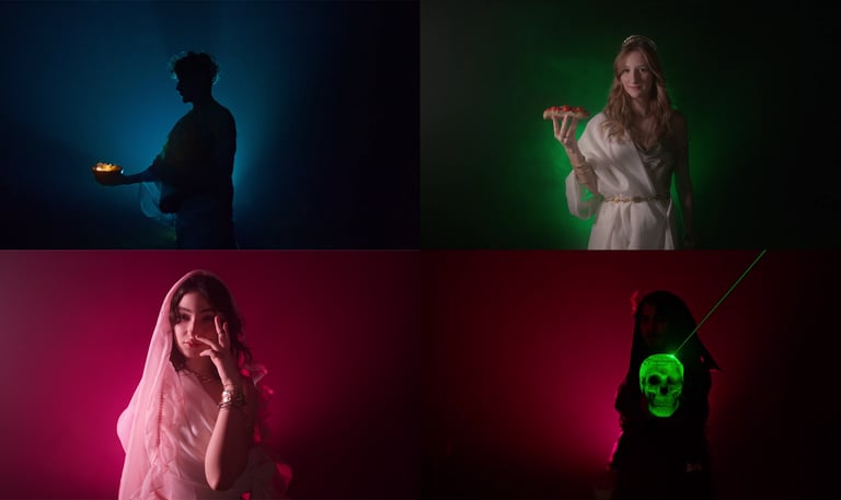Réalisation du fausse publicité dans le cadre d'un travail étudiant sur la promotion d'une tartine méditerranéenne en utilisant la mythologie grecque comme DA.